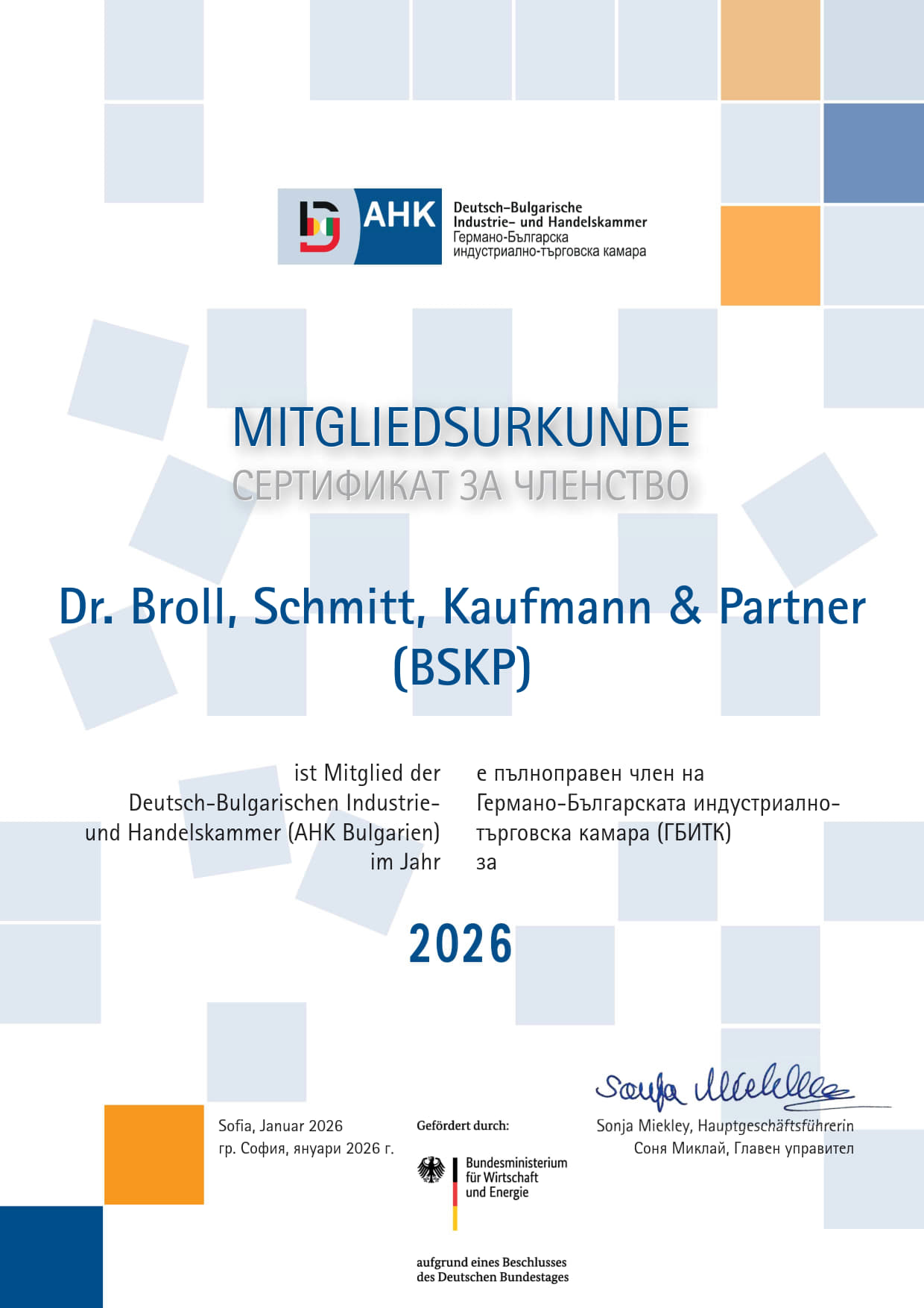 член на Германо-българска индустриално-търговска камара (AHK България)